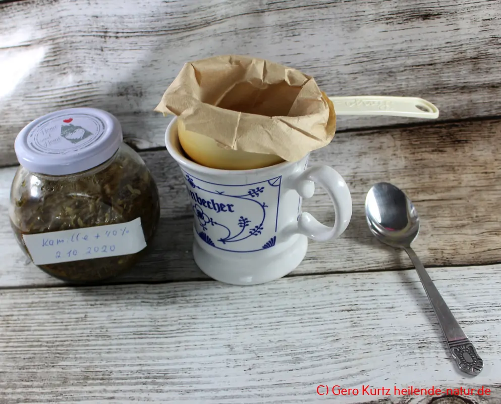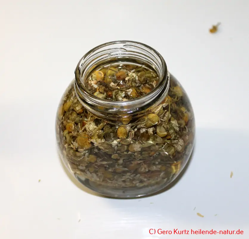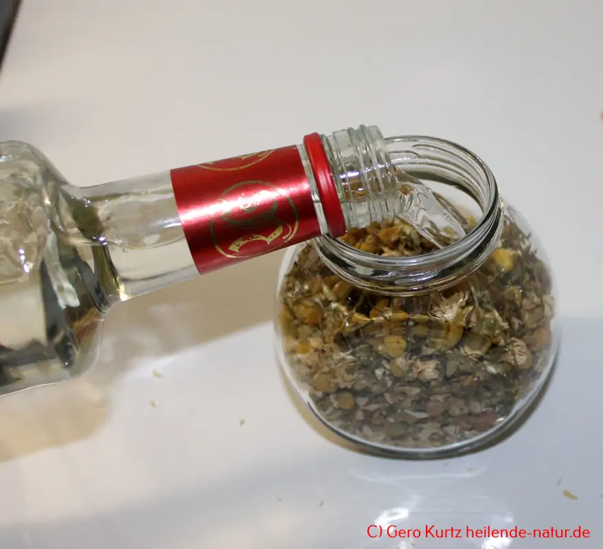 Herstellen der Tinktur aus den gesammelten Kamillenblüten