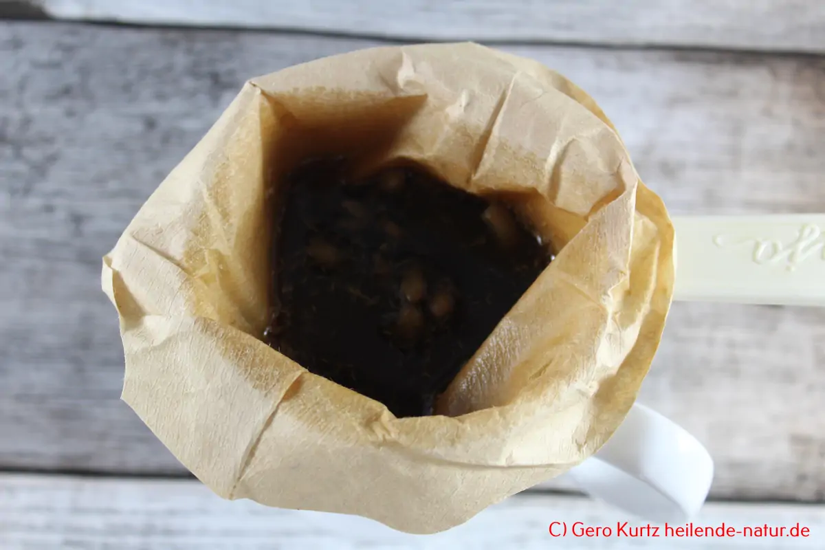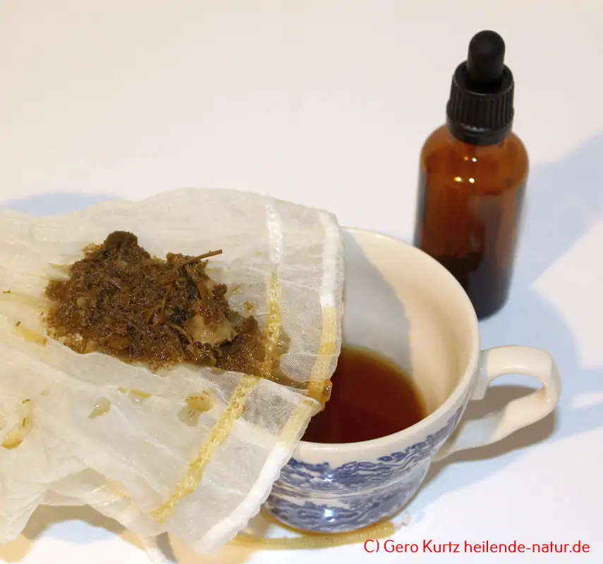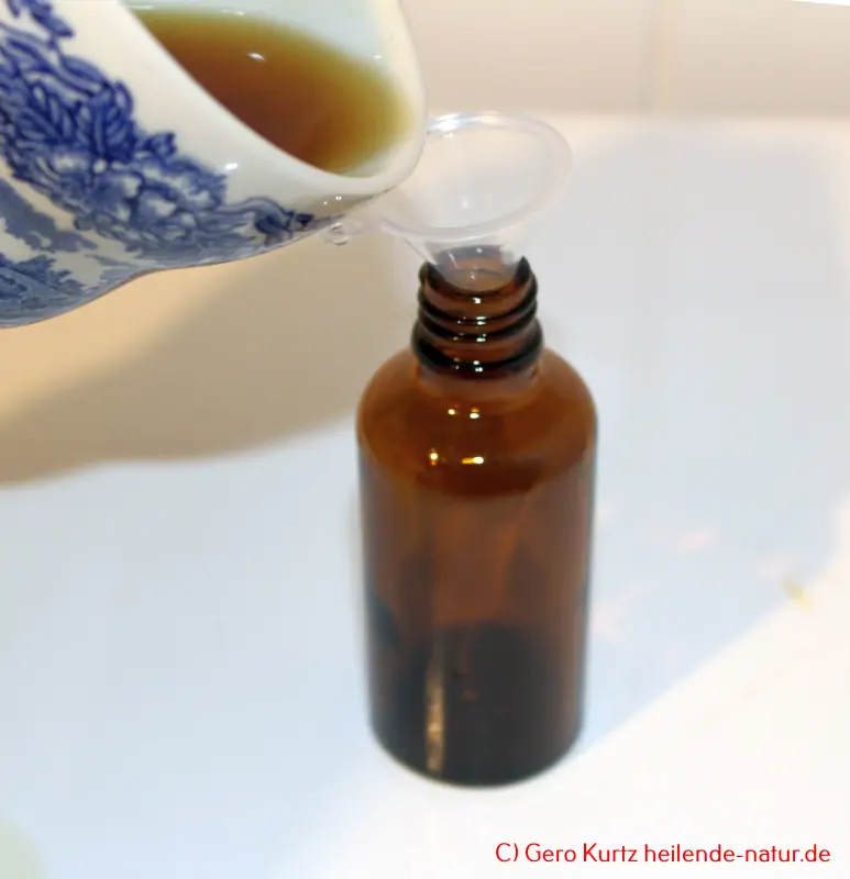 Nach der Reifezeit die Tinktur durch ein feines Sieb oder einen Kaffeefilter abseihen.