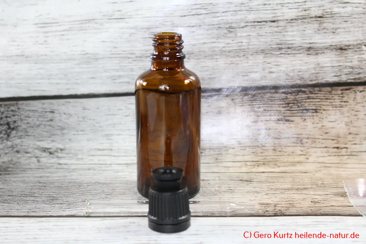 Die Kamillentinktur an einem dunklen Ort mehrere Wochen reifen lassen, idealerweise zwei bis sechs Wochen.